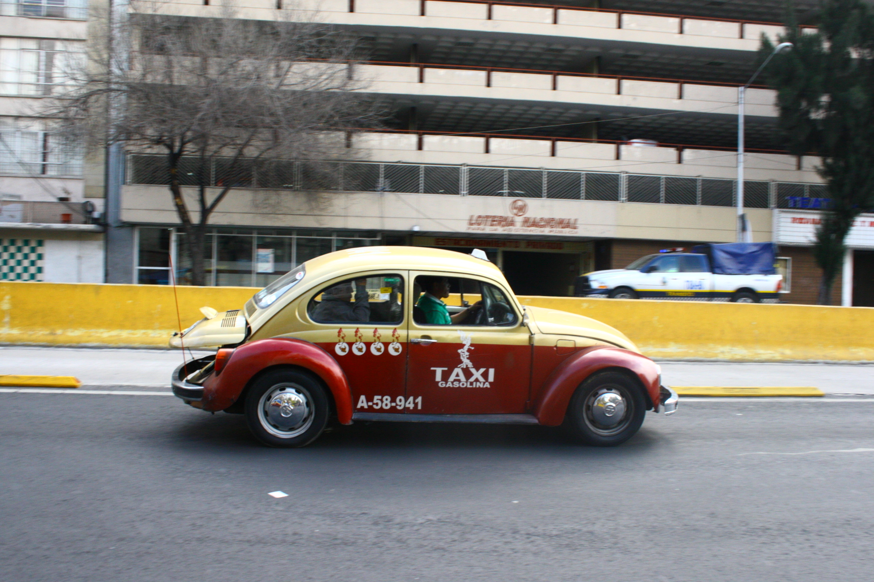 メキシコのタクシーってフォルクスワーゲンの旧ビートルなんです。